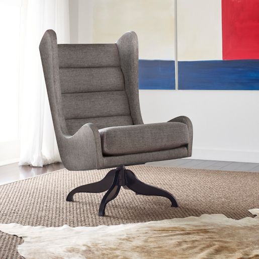 The grayson tufted swivel chair is a crate and barrel exclusive.